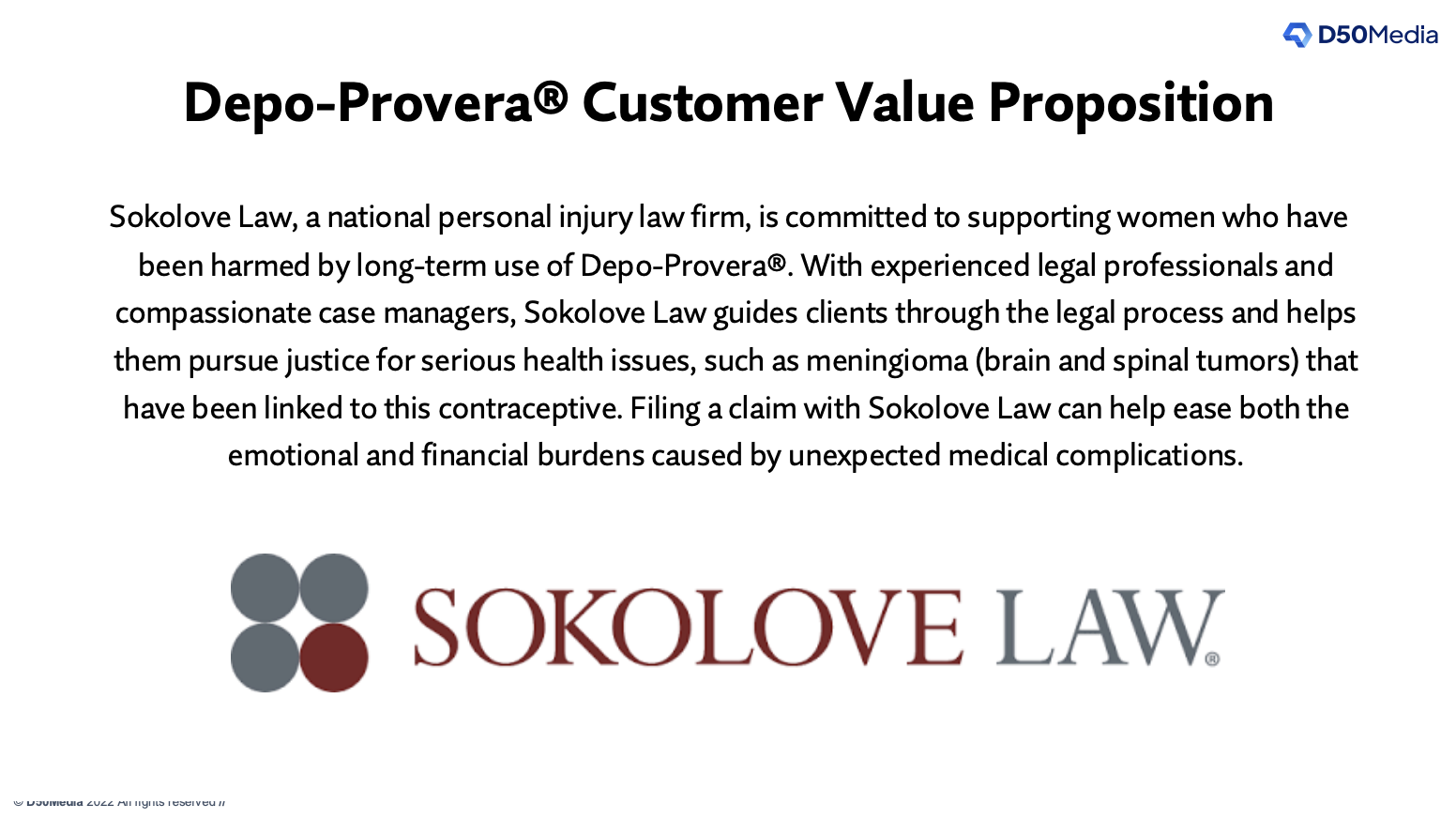 The Depo-Provera case alleges that long-term use of the injectable birth control Depo-Provera may increase the risk of developing meningiomas, a type of brain or spinal tumor. The lawsuit claims Pfizer failed to adequately warn patients and healthcare providers about these risks despite emerging medical evidence. Affected individuals may experience serious neurological symptoms and may be eligible to seek compensation for medical costs and other damages through firms like Sokolove Law.